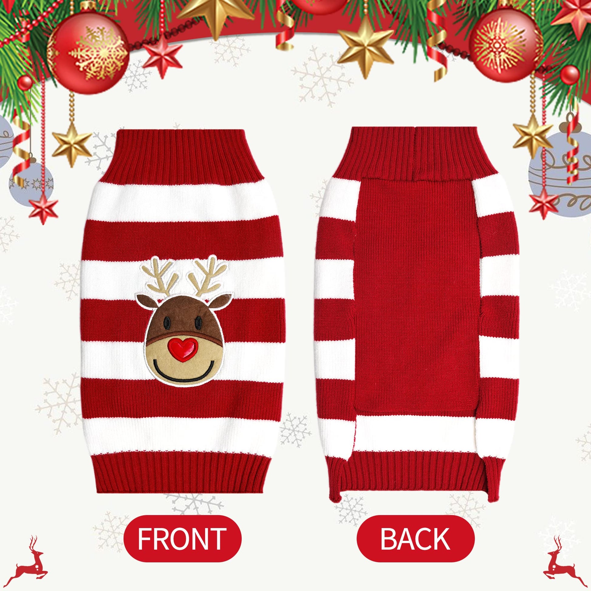 - Material: Acrylic Fabric,slight flexibility, excellent sewing technology,let your pet baby warm and comfortable.Reindeer woven by multicolor is full of fairy tales style, let your pet baby more lovely.